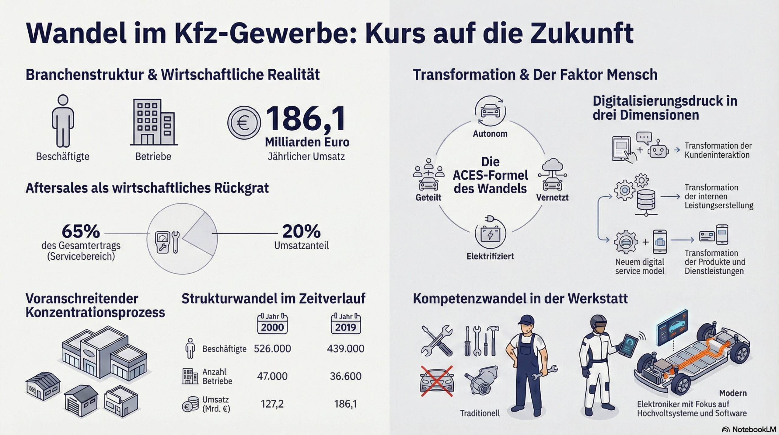 Der Strukturwandel im Kraftfahrzeuggewerbe hat eine historische Dimension erreicht. Getrieben von Digitalisierung, Dekarbonisierung und neuen Mobilitätskonzepten steht das klassische Geschäftsmodell von Autohäusern und freien Werkstätten unter massivem Anpassungsdruck. Für Entscheider im Aftersales ist es unerlässlich, die Mechanismen dieser Transformation zu verstehen und proaktiv zu gestalten, um die Ertragssäule des Unternehmens zu sichern.